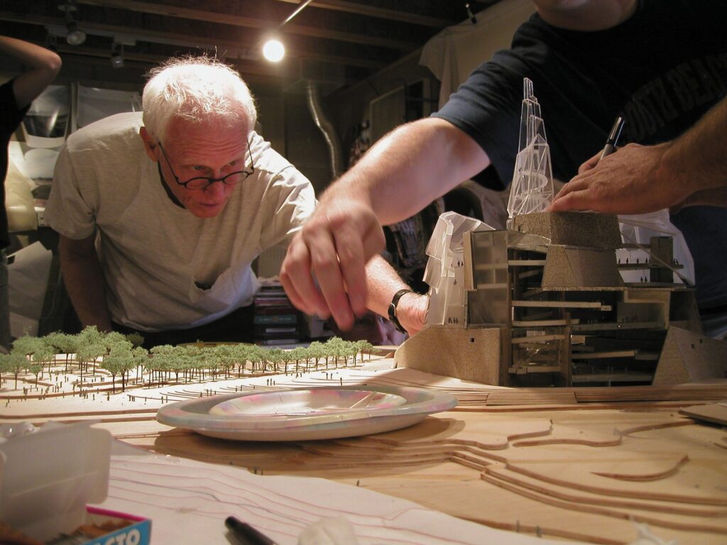 Antoine Predock famously said, ‘The best buildings are time travelers.’ He believed that great architecture is timeless – passing through generations gathering stories. The aspiration toward a timeless architecture continues to guide the studio. Our studio was founded in 1967, when Antoine – after completing his education, internships, and travels around the world – was given the opportunity to develop La Luz; a community on Albuquerque’s west side. He began with careful observation of the windswept site, a bluff overlooking the Rio Grande, mapping weather patterns, solar paths, bird migration, mosquitos, and other conditions that could effect the life of the people who would inhabit the site. The result was not only an iconic, award-winning example of sustainable design, but also the conceptual framework for the studio that bears his name.