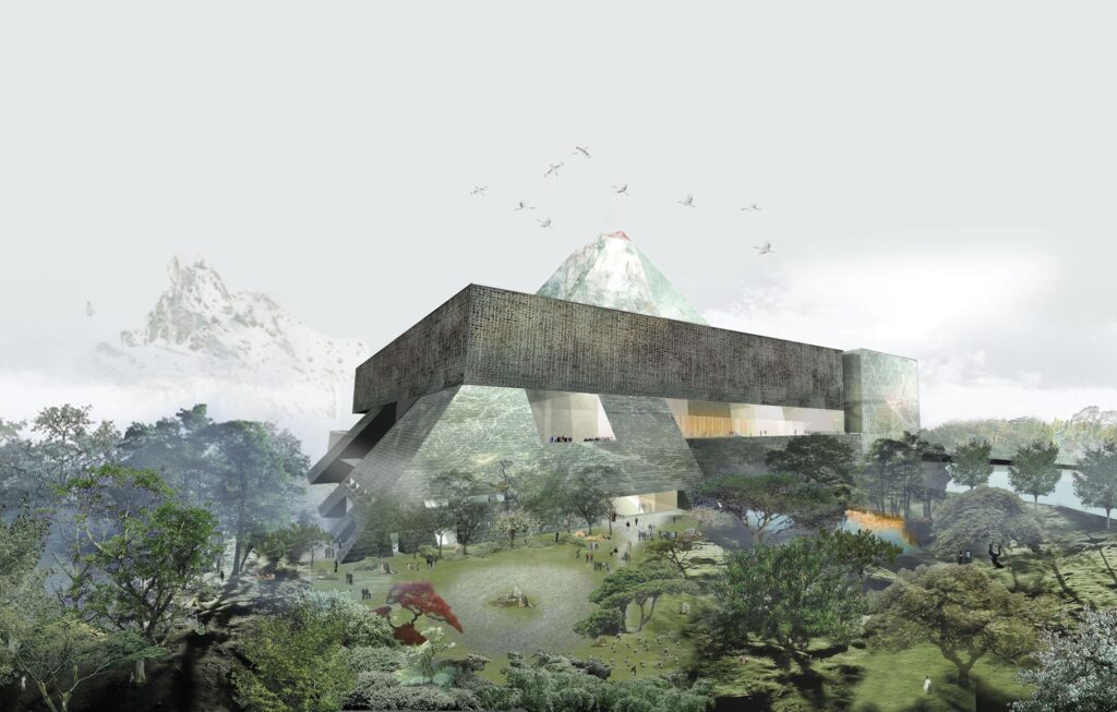 Set 160 miles outside of Taipei on former farmland at the edge of a new development in Chiayi, Predock Studio’s design rises in quiet dialogue with the Island’s highest peak. The museum is conceived as an architectural ode to Yu Shan, known in Taiwanese aboriginal cosmology as “Jade Mountain” a summit believed to compose the boundary between the human world and the mythic realm.