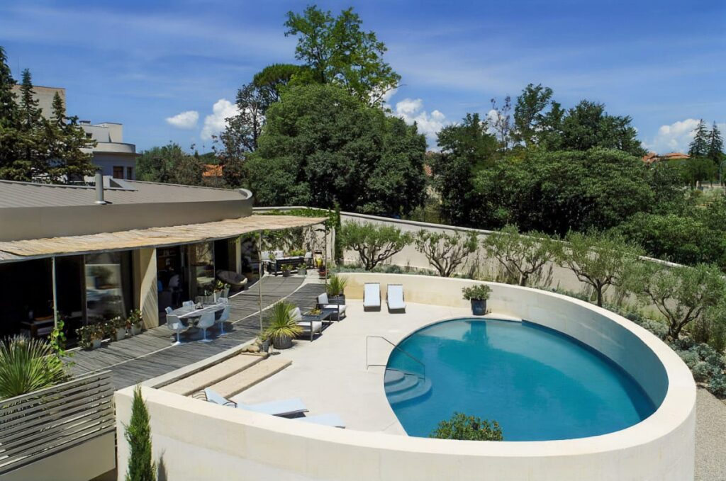 This small footprint of the villa appears to be carved out of massive load bearing blocks of local limestone, stripped down to its essence, like a sculptural ode to its storied site. With great sensitivity and exquisitely executed detail, Predock Studio has transformed the weight of history into a fluid and contemporary residence.